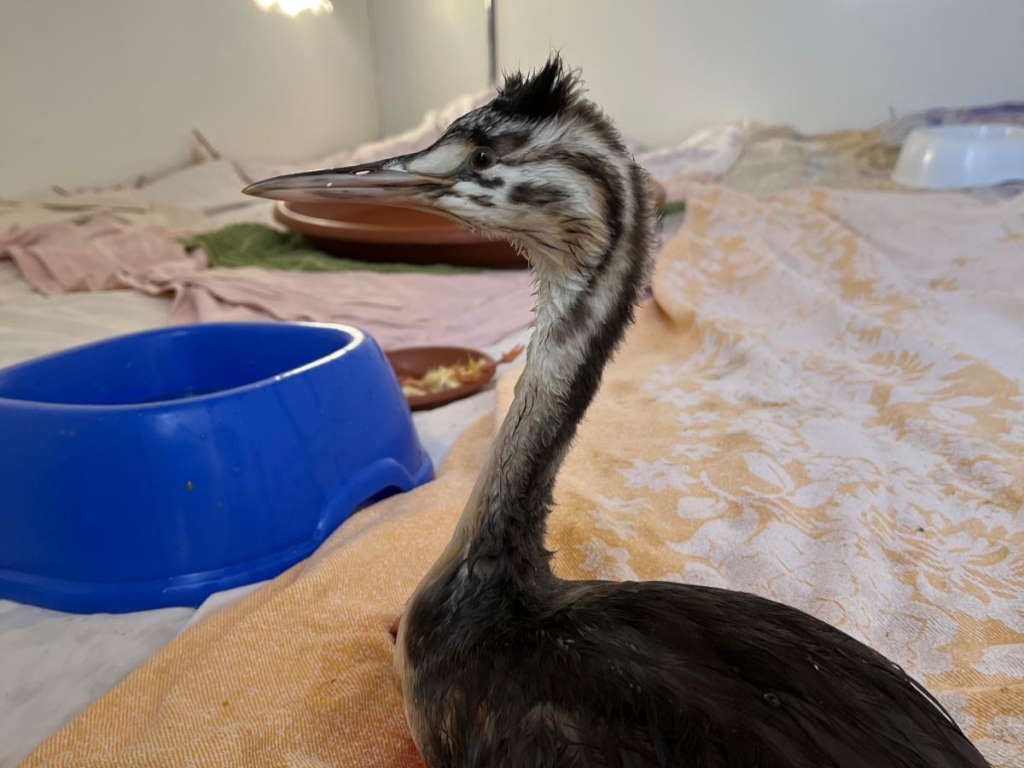 Die Arbeiter in einer Baugrube staunten nicht schlecht, als sie zwischen Sand und Schotter ein verängstigtes Federvieh entdeckten: einen Haubentaucher. Weit und breit war kein Gewässer zu sehen und Haubentaucher gelten nicht als gute Flieger. Der Vogel war jung, fast erwachsen, aber nicht in der Lage, eine längere Strecke zu fliegen.