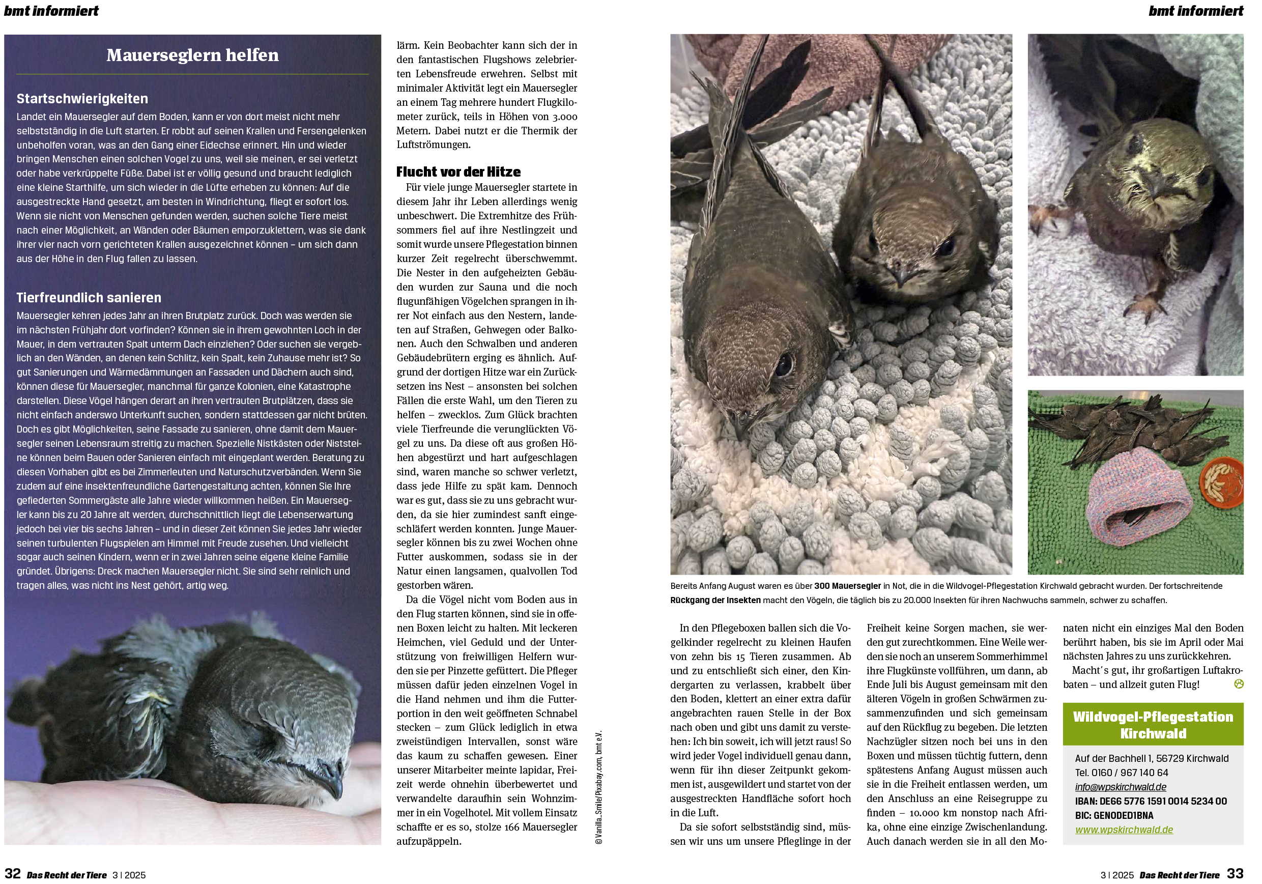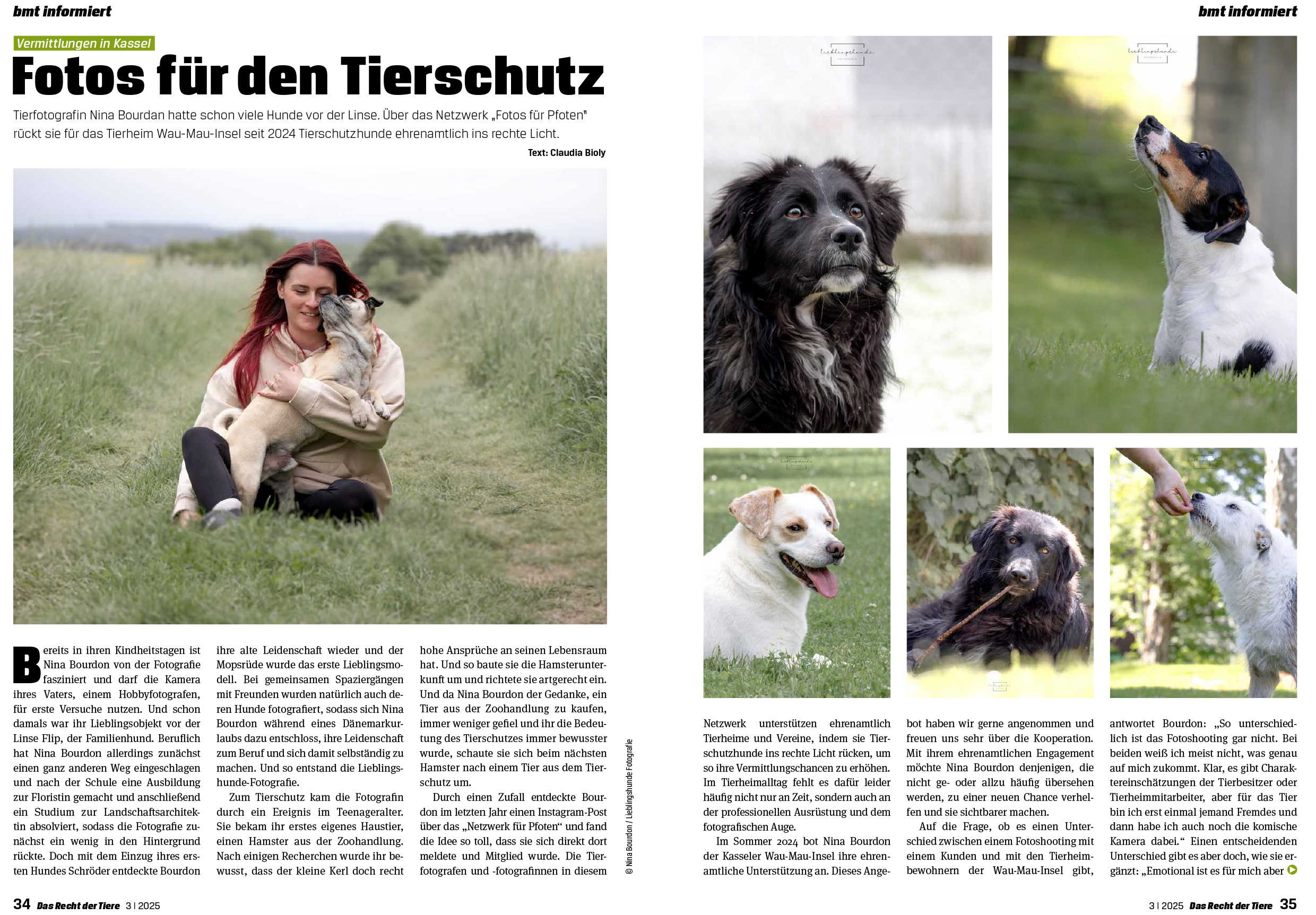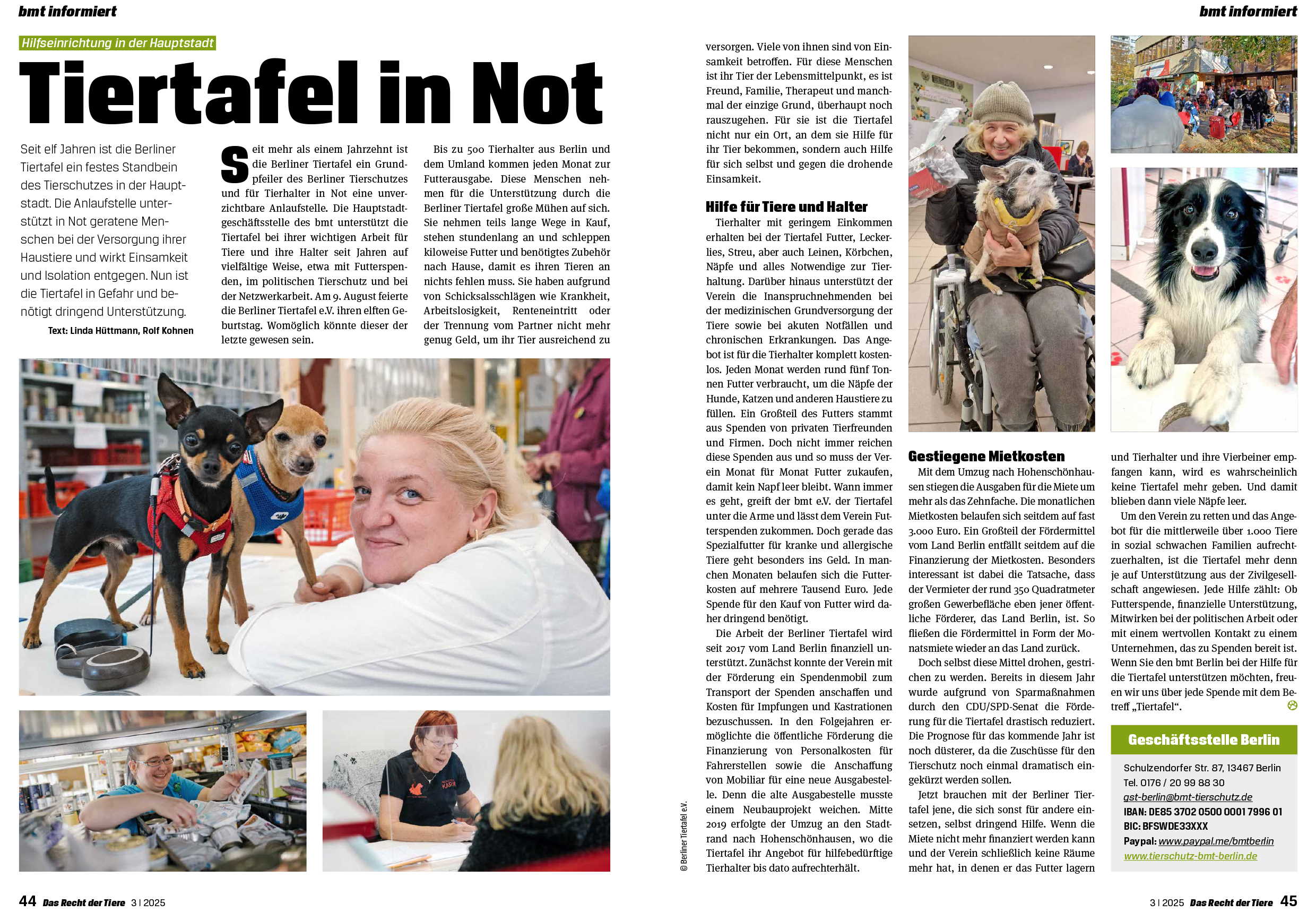 "Das Recht der Tiere", kurz RdT, ist das Tierschutzmagazin des bmt, das viermal jährlich in einer Auflage von 16.000 Exemplaren erscheint.