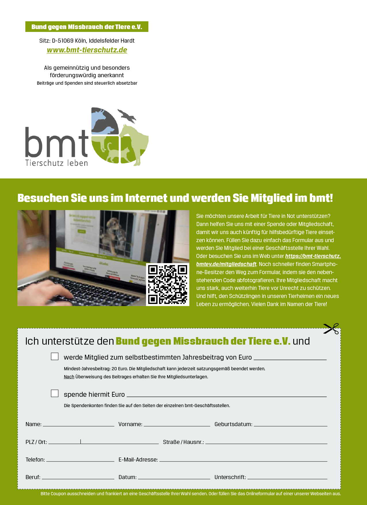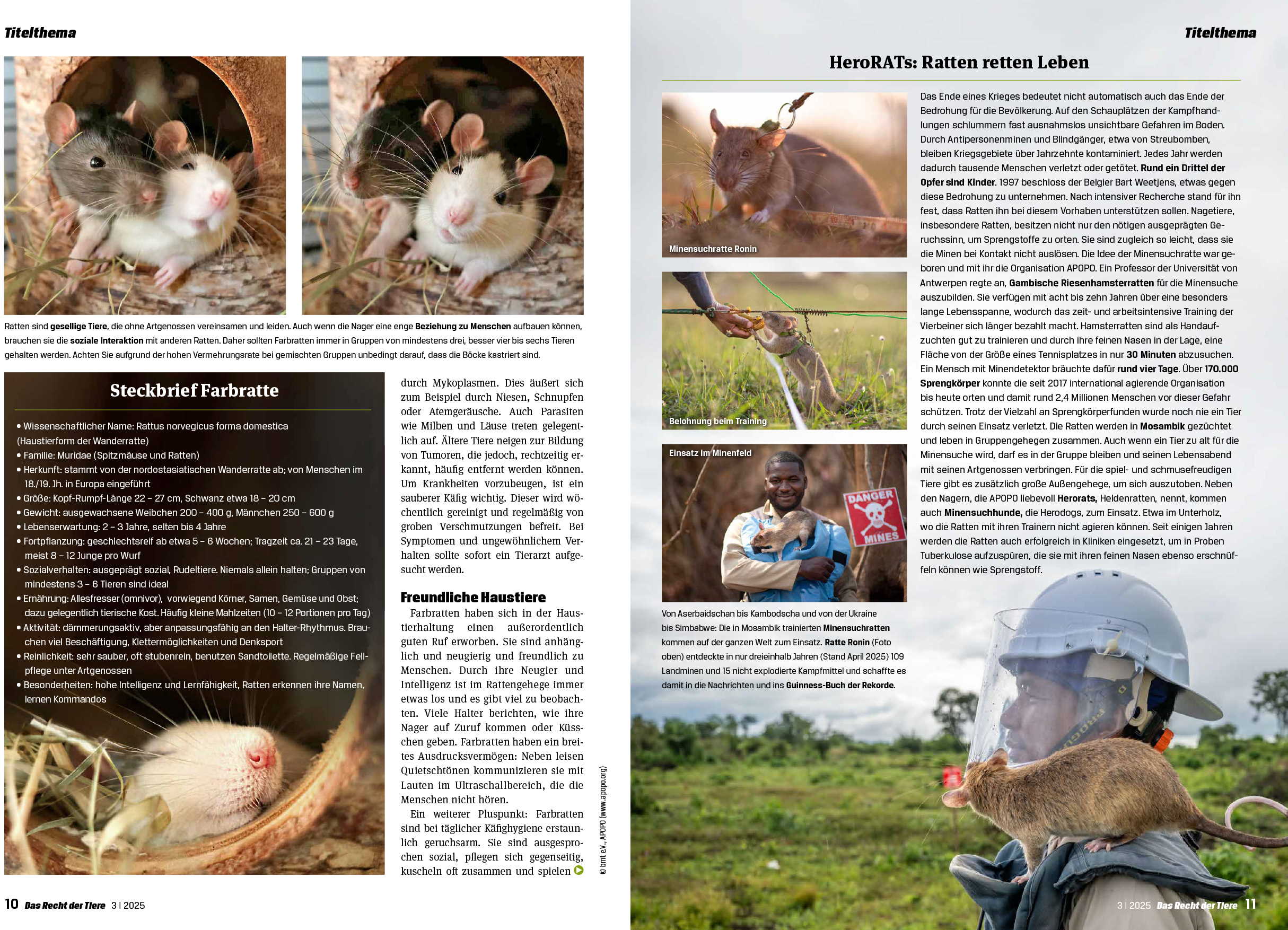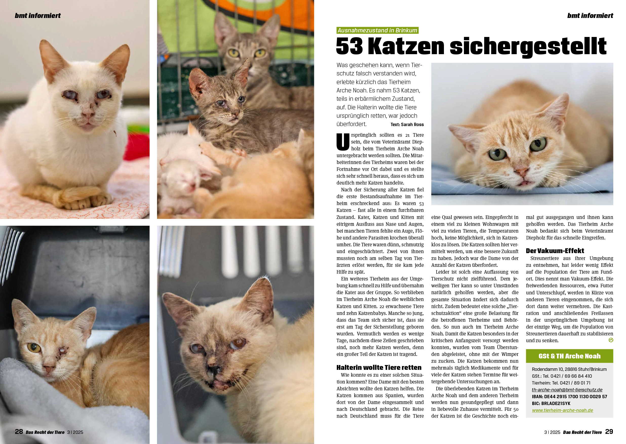 "Das Recht der Tiere", kurz RdT, ist das Tierschutzmagazin des bmt, das viermal jährlich in einer Auflage von 16.000 Exemplaren erscheint.